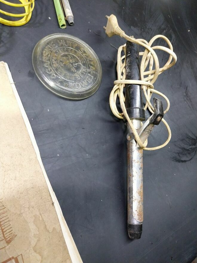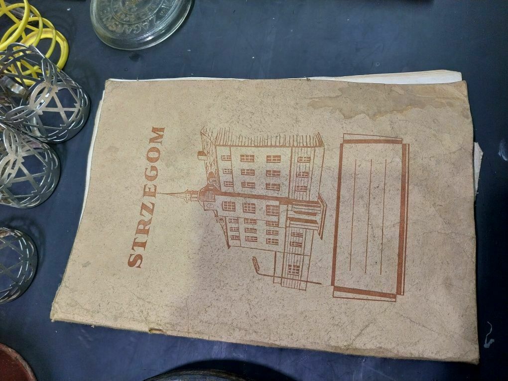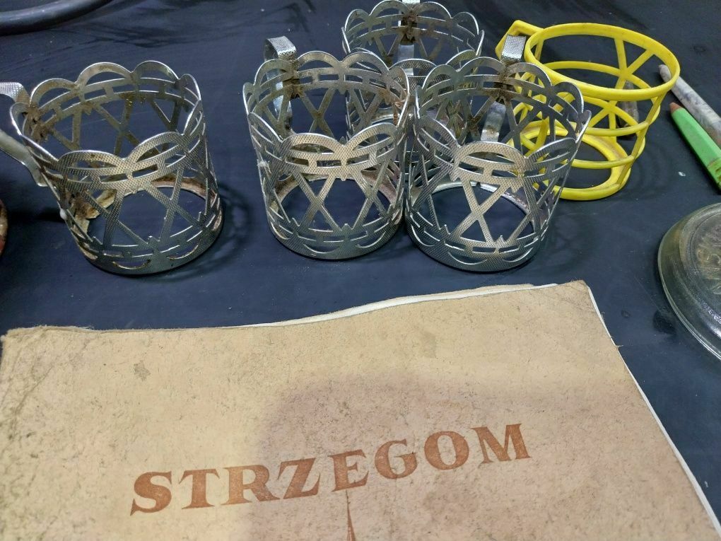 Sprzedam zabytkowe przedmioty z czasów PRLW zestawie: dzbanek, koło wózka, zeszyt, lokówka, długopisy, pokrywka szklana, podstawki do szklanek