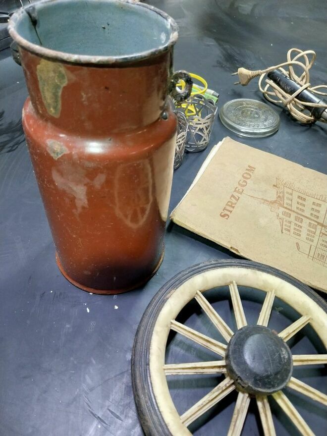 Zabytkowe przedmioty PRL KOMUNA dzbanek koło wózka lokówka